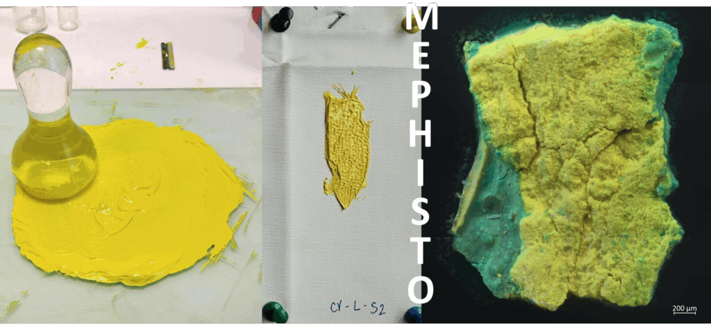 Certaines peintures modernes à l’huile du milieu du XXe, notamment celles de la Seconde École de Paris, présentent un phénomène de ramollissement de la couche picturale. Observées depuis les années 1990, ces altérations se manifestent par l’apparition d’empâtements mous, des surfaces poisseuses ou encore des exsudations de liant et compromettent à la fois la stabilité matérielle et la lisibilité visuelle des œuvres. Les mécanismes physico-chimiques à l’œuvre et l’implication de facteurs tels que conditions de séchage ou l’usage de siccatifs restent encore mal compris. Dans le cadre du stage, deux approches complémentaires seront mises en œuvre pour l’étude de ce phénomène. La première vise à enrichir le corpus d’échantillons modèles de peinture à l’huile en affinant les paramètres variables (conditions de séchage, épaisseur des couches, proportion et type de siccatif) dans le but de créer de l’instabilité ou hétérogénéités. Ces modèles permettront d’évaluer la cinétique des premiers stades d’oxydation et de polymérisation des films de peinture en surface et à cœur avec un suivi par spectroscopie infrarouge (OPT-IR ou IR-TF). La seconde approche consistera à analyser un corpus de fragments historiques du triptyque (Sans titre, 1969) de Joan Mitchell conservé au musée de Brou. Cette étude permettra de mieux caractériser la technique picturale de l’artiste et la matérialité de cette œuvre majeure, à l’aide d’analyses élémentaires (XRF/MEB-EDX) complétées éventuellement par du XAS et XRD, et de spectroscopie infrarouge (IR-TF) pour les matériaux organiques.